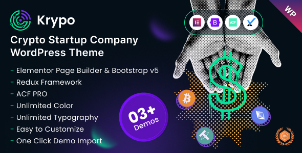 Krypo – Crypto Coin Startup Elementor WordPress Theme
